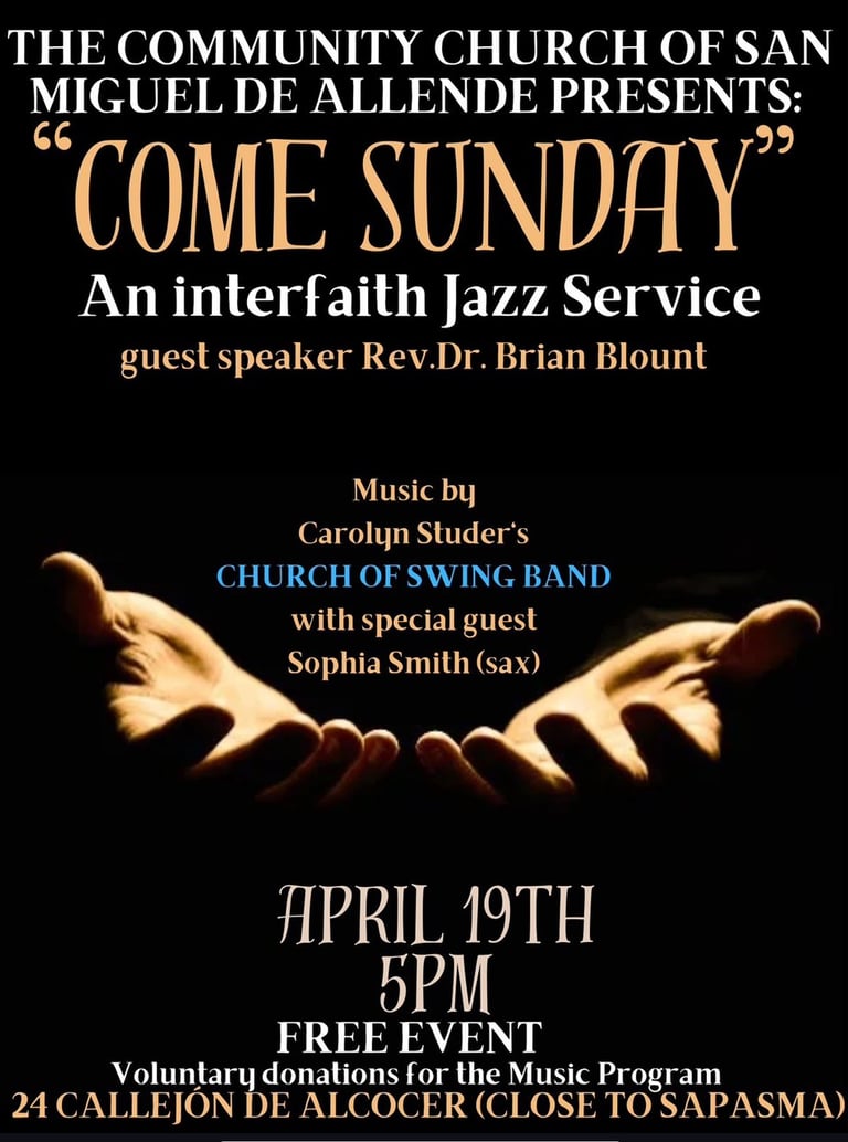 Sunday, April 18 - Come Sunday Jazz and Poetry Service. 5:00 PM at the Church.